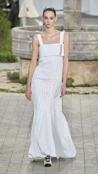 Dans les années soixante, apparaît la mini jupe. Chanel s'y oppose en maintenant son style coupes genoux d'autrefois.